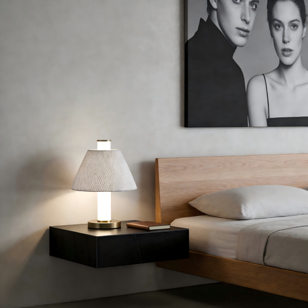 Lampkroppen är gjord av robust järnkonst och behandlad med en galvaniseringsprocess i borstad koppar, vilket ger en delikat och avancerad metallisk struktur. Den vita sidentygsskärmen är mjuk och sprider ljuset jämnt, vilket skapar en varm och mild ljusatmosfär. 20W LED-ljuskällan, i kombination med en hög ljusstyrka på 2000LM, möter dagliga belysningsbehov. Den neutrala färgtemperaturen på 4000K (kan anpassas till 2700K, 3000K, 5000K, etc. enligt kundens krav) och ett färgåtergivningsindex på över Ra80 säkerställer den sanna färgåtergivningen av objekt, vilket ger en bekväm visuell upplevelse oavsett om det är för att läsa, arbeta eller koppla av.